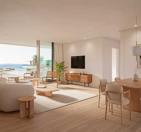 Alma biedt een verfijnde selectie appartementen met veel licht, ruimte en vloeiende overgangen tussen binnen en buiten. De royale balkons trekken de frisse zeelucht naar binnen en bieden uitzicht op het kustlandschap van Portugal.